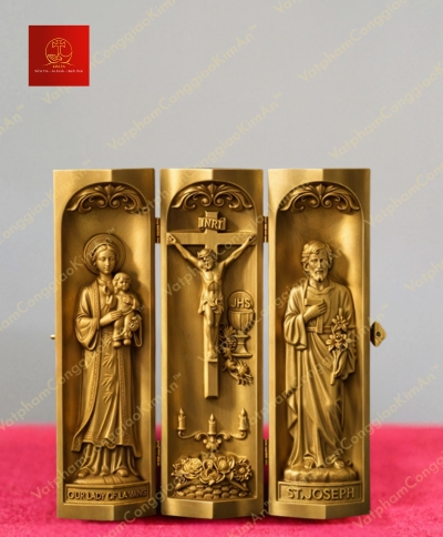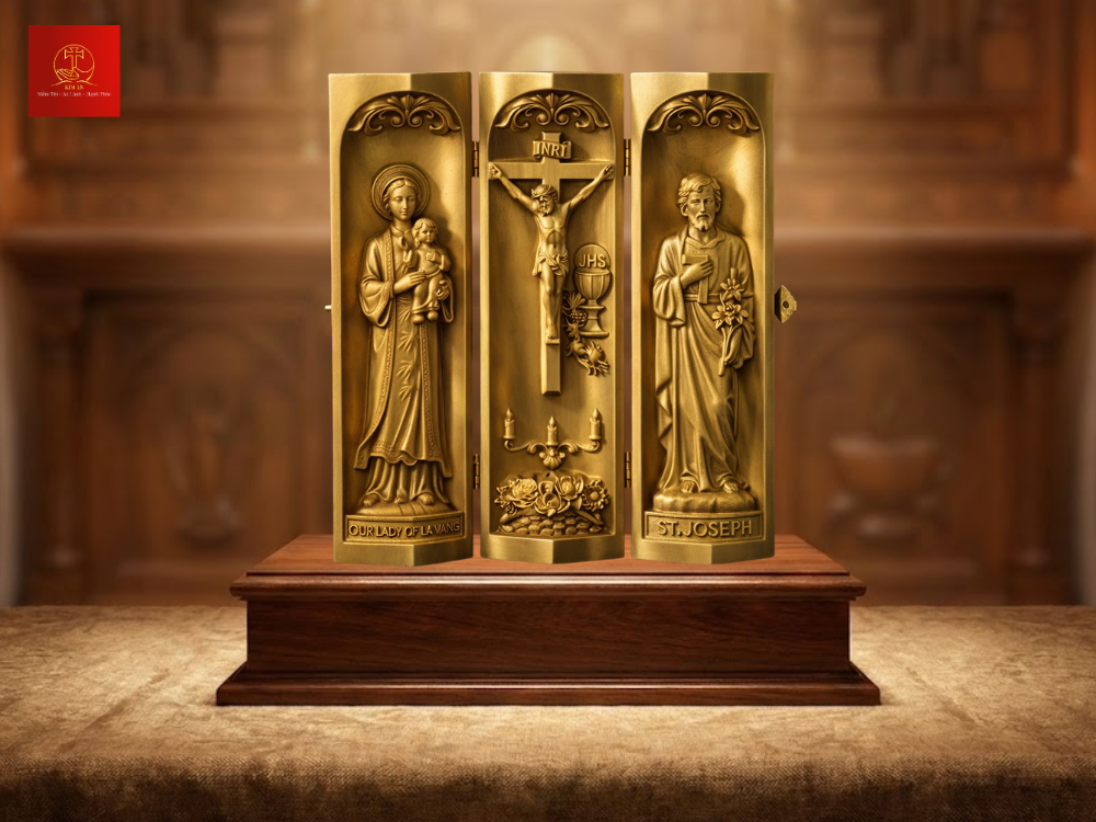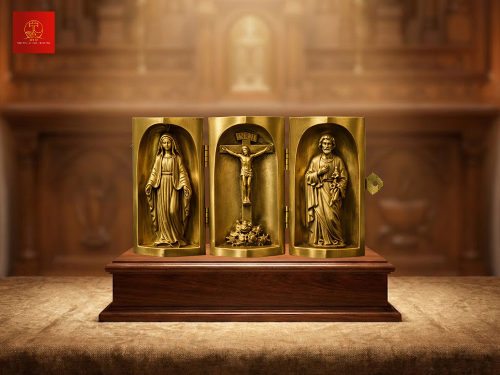 Bàn thờ công giáo mini để bàn, có thể gấp gọn bằng đồng của Vật phẩm Công giáo Kim Ân