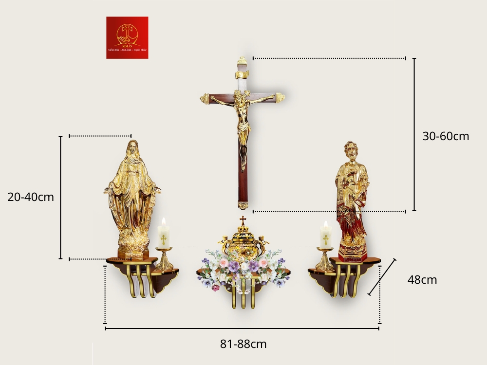 Bạn có thể tham khảo chi tiết tại bài viết kích thước bàn thờ Công giáo để hiểu rõ hơn về các tỷ lệ chuẩn cũng như có lựa chọn phù hợp từng không gian.