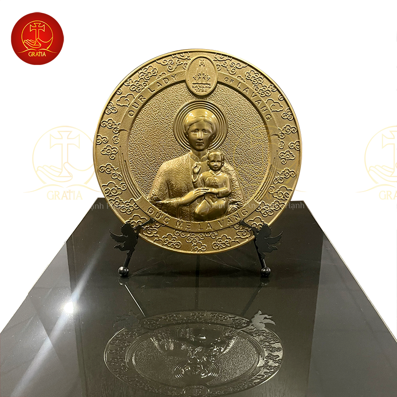 PHÙ ĐIÊU MẸ LA VANG BẰNG INOX được làm bằng chất liệu đồng thau, công nghệ xử lý tạo màu sản phẩm mang màu đặc trưng của Vật Phẩm Công Giáo Gratia, bề mặt sản phẩm được phủ một lớp bảo vệ giúp sản phẩm không bị ảnh hưởng từ môi trường, giữ cho màu sắc không bay màu.