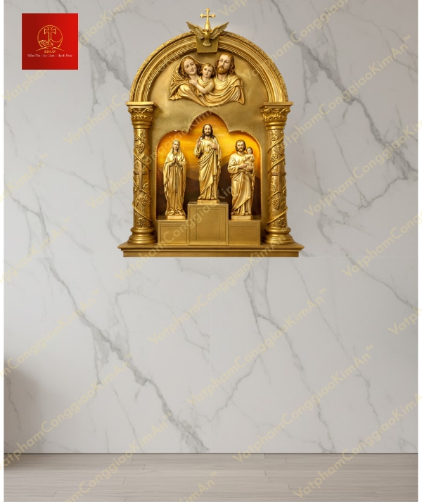 Được chế tác từ đồng cao cấp và mạ Vàng Gold 24K, kệ thờ không chỉ bền chắc theo thời gian mà còn mang vẻ đẹp sang trọng, linh thiêng. Thiết kế treo tường giúp tối ưu không gian sử dụng, tạo điểm nhấn trang trọng cho góc thờ Chúa trong mỗi gia đình Công giáo.