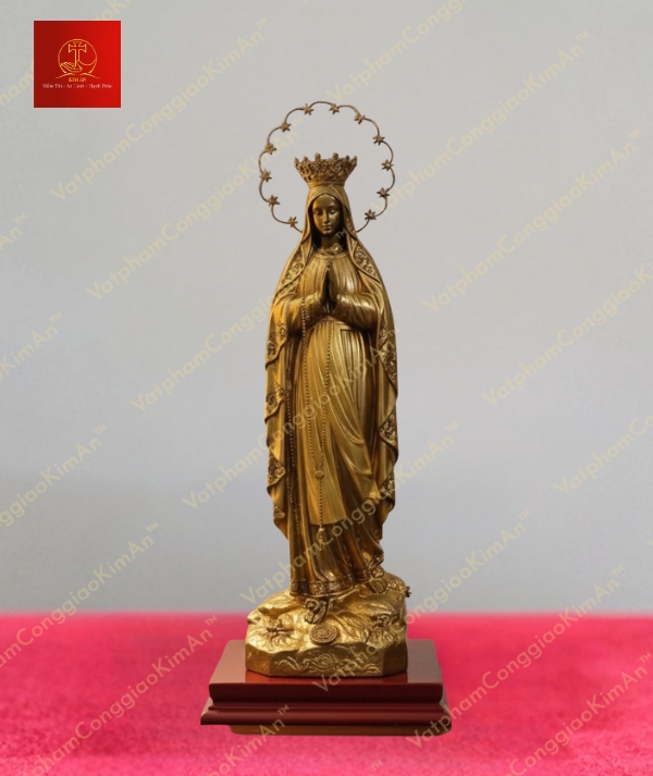 Tượng Mẹ Lộ Đức đội vương miện 12 vì tinh tú phát sáng chất liệu đồng cao 30cm không chỉ là một vật phẩm tâm linh mà còn là biểu tượng của niềm tin và sự bình an cho gia đình bạn. Với thiết kế tinh tế, chất liệu cao cấp và giá trị ý nghĩa sâu sắc, đây là lựa chọn hoàn hảo để tôn vinh Đức Mẹ trong không gian thờ cúng. Hãy nhanh tay sở hữu sản phẩm này từ Vật Phẩm Công Giáo Kim Ân để mang về một tác phẩm nghệ thuật tâm linh đầy ý nghĩa, đồng hành cùng bạn trên hành trình đức tin.
