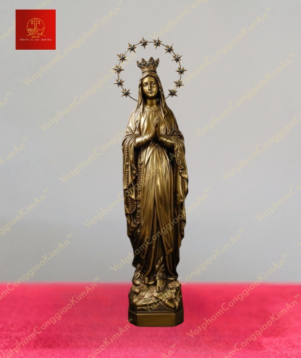 Tượng Mẹ Lộ Đức đội vương miện tỏa hào quang 12 tinh tú chất liệu đồng cao 40cm không chỉ là một vật phẩm thuộc dòng Tượng Đức Mẹ Lộ Đức mà còn là biểu tượng của đức tin và sự bình an cho gia đình bạn. Với thiết kế tinh tế, chất liệu cao cấp và giá trị tâm linh sâu sắc, đây là món quà ý nghĩa hoặc vật phẩm không thể thiếu trong không gian thờ cúng. Hãy nhanh tay sở hữu sản phẩm từ Vật Phẩm Công Giáo Kim Ân để mang đến sự linh thiêng và trang trọng cho ngôi nhà của bạn ngay hôm nay.