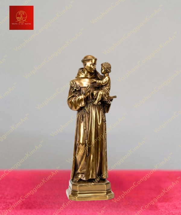 Tượng Thánh Anton trang phục tu sĩ thánh thiện bế Chúa Hài Đồng chất liệu đồng cao 35cm không chỉ là một vật phẩm tâm linh mà còn là biểu tượng của sự bình an và đức tin trong mỗi gia đình Công giáo. Với thiết kế tinh xảo, chất liệu cao cấp và màu sắc sang trọng, sản phẩm từ Vật Phẩm Công Giáo Kim Ân xứng đáng là lựa chọn hàng đầu để tôn vinh không gian thờ cúng của bạn. Hãy nhanh tay sở hữu ngay hôm nay để mang về một tác phẩm nghệ thuật đầy ý nghĩa, đồng hành cùng bạn trên hành trình đức tin.