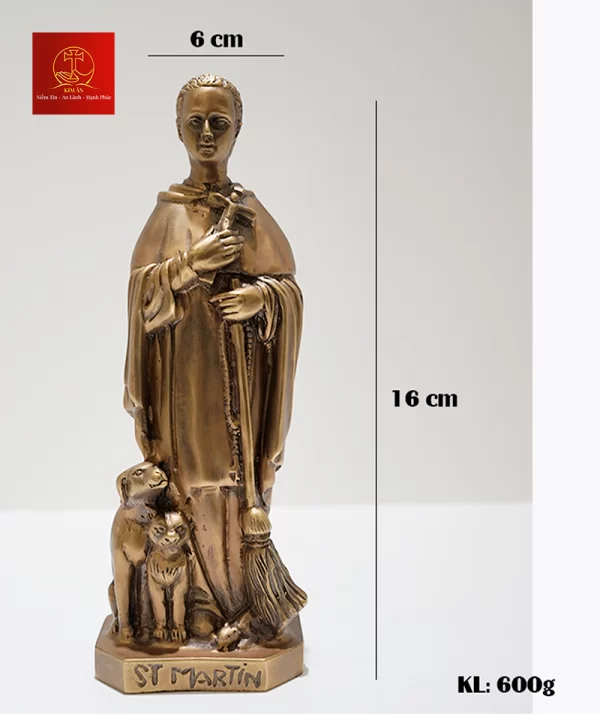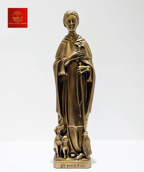 Tượng Thánh Martino được làm bằng chất liệu đồng thau, công nghệ xử lý tạo màu sản phẩm mang màu sắc giả cổ, vàng gold đặc trưng của Kim Ân, bề mặt sản phẩm được phủ một lớp bảo vệ giúp sản phẩm không bị ảnh hưởng từ môi trường, giữ cho màu sắc không bay màu.