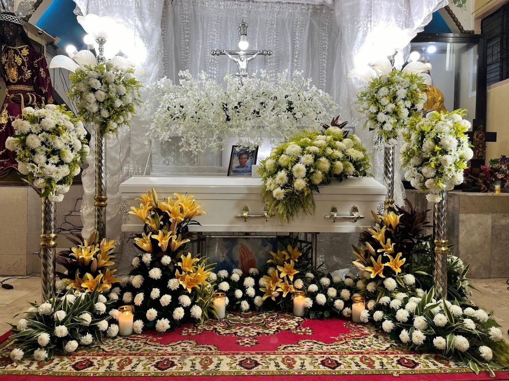 Trang trí nhà thờ cho đám tang Công giáo với hoa hồng vàng và hồng trắng