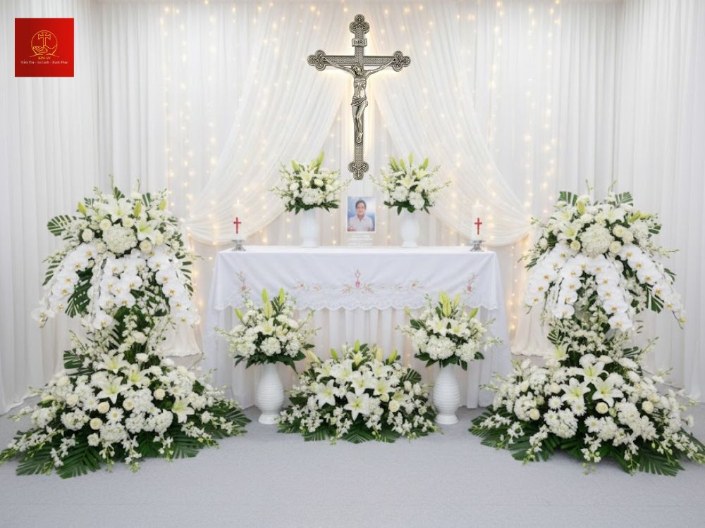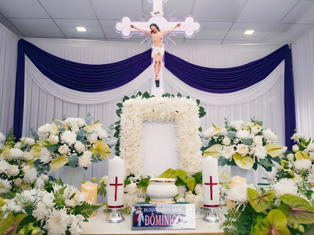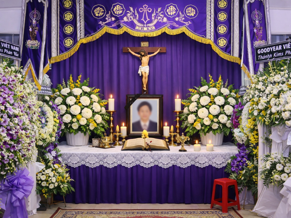 Trong Đức tin Công giáo, cái chết không phải là sự kết thúc mà là một cuộc biến đổi, là hành trình trở về với Thiên Chúa để chờ đợi ngày phục sinh. Chính vì vậy, việc trang trí bàn thờ đám tang Công giáo mang một ý nghĩa đặc biệt thiêng liêng, thể hiện lòng tôn kính dành cho người đã khuất và niềm hy vọng vào sự sống đời sau. Bài viết này sẽ hướng dẫn chi tiết cách chuẩn bị vật phẩm và trang trí bàn thờ tang chuẩn giáo luật và trang trọng nhất.
