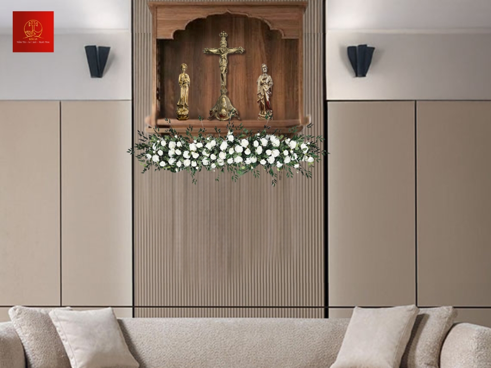 Kích thước 35cm cân đối khi bài trí trong bộ bàn thờ Công giáo trọn gói.